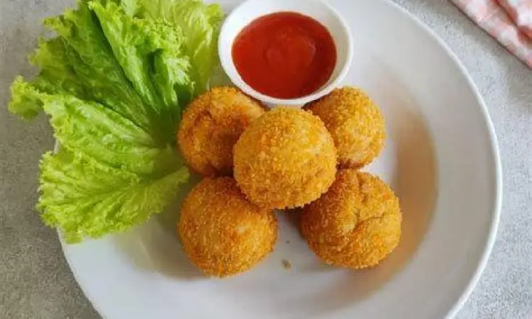 - Ambil satu sendok makan adonan, bulatkan dengan tangan, lalu gulingkan di atas tepung roti jika ingin hasil yang lebih krispi.