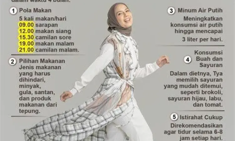 Program **diet Tya Ariestya** menjadi topik yang sangat hangat diperbincangkan di kalangan masyarakat Indonesia, terutama bagi mereka yang sedang berjuang melawan obesitas atau sekadar ingin mendapatkan berat badan ideal. Keberhasilan artis cantik ini dalam memangkas bobot tubuh hingga lebih dari 25 kilogram dalam waktu sekitar empat bulan memicu rasa penasaran publik mengenai metode apa yang sebenarnya ia terapkan. Tidak seperti diet pada umumnya yang seringkali menyiksa atau mengharuskan penggunaan suplemen mahal, metode yang dijalankan Tya justru berfokus pada kedisiplinan waktu dan pengaturan asupan makanan secara alami.