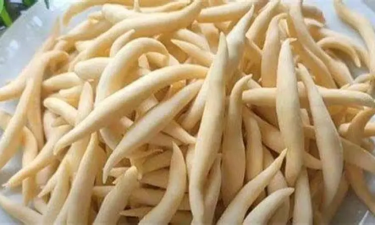 - Ambil sedikit adonan (sekitar ujung jari), lalu pilin di antara kedua telapak tangan hingga membentuk lonjong runcing.