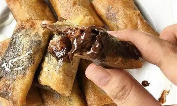 - Lipat kulit lumpia dengan rapat dan gunakan sedikit larutan tepung terigu sebagai perekat agar coklat tidak bocor saat digoreng.